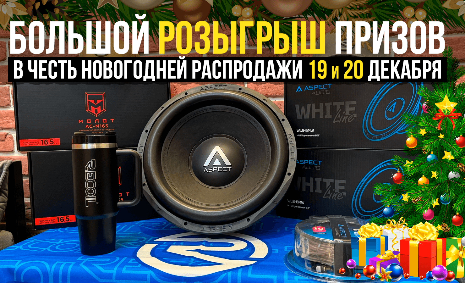 Напоминаем, что уже 19 и 20 декабря вас ждет НОВОГОДНЯЯ РАСПРОДАЖА со скидками до 50%! Например, процессорный cабвуфер Aspect GLW-10s4 SQI можно
