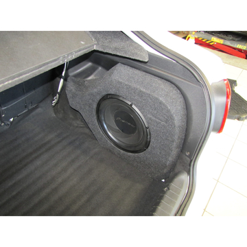 - Компактный дизайн: Короб устанавливается в багажнике, не занимая много места, и идеально подходит для автомобилей с ограниченным пространством.