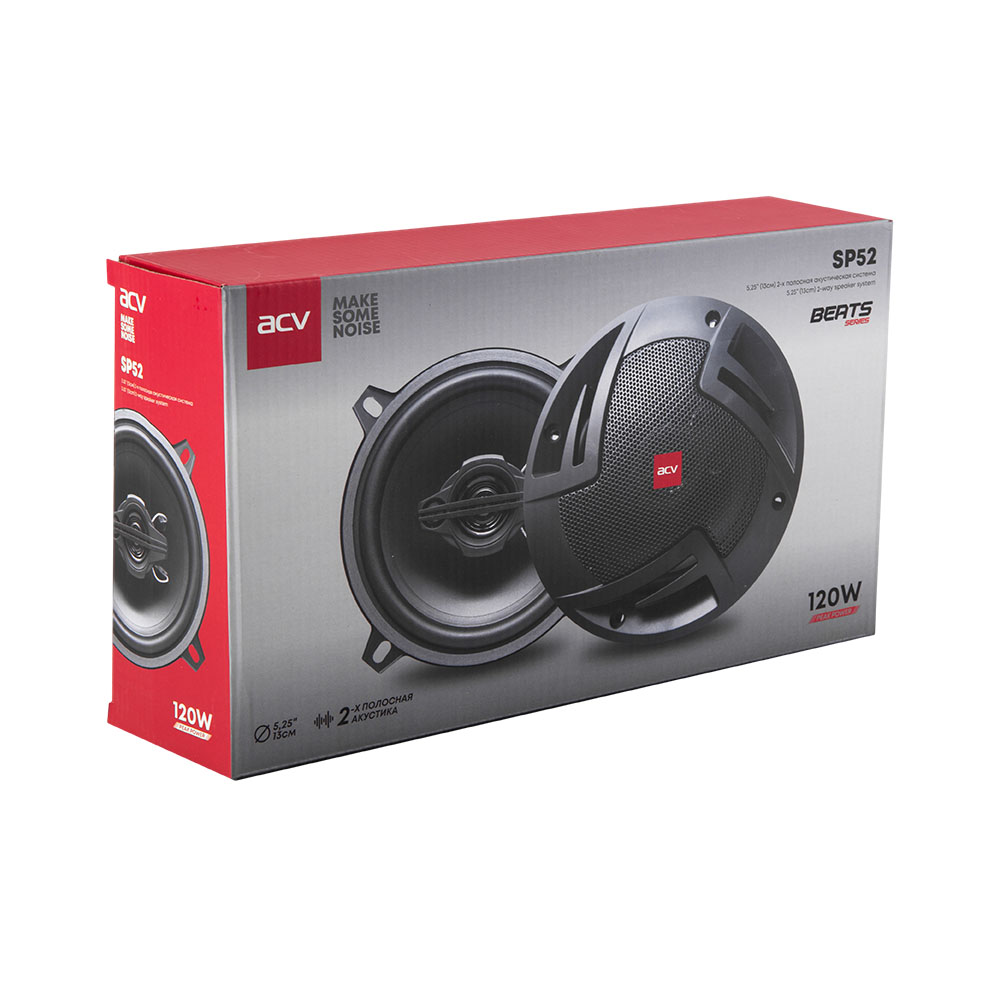 ACV SP52 – компактная 13-сантиметровая двухполосная коаксиальная акустика, созданная для точной и чистой передачи звука в системах автозвука. Совмещает в себе передовые технологические решения и надежную конструкцию: твитер и среднечастотный динамик размещены в одной стальной корзине и работают согласованно для достижения насыщенного звучания. Система комплектуется звуковой катушкой 25 мм и магнитом весом 5,4 унции, что обеспечивает стабильную работу даже при длительной нагрузке. Диффузор из полипропилена с прорезиненным подвесом выдерживает значительные вибрации, эффективно воспроизводя средние частоты без искажений. Пьезо твитер из майлара мягко передаёт верхние частоты, формируя сбалансированную звуковую картину. С акустикой ACV SP52 вы получаете универсальное решение как для подключения напрямую к головному устройству, так и для встраивания в более сложные аудиосистемы.