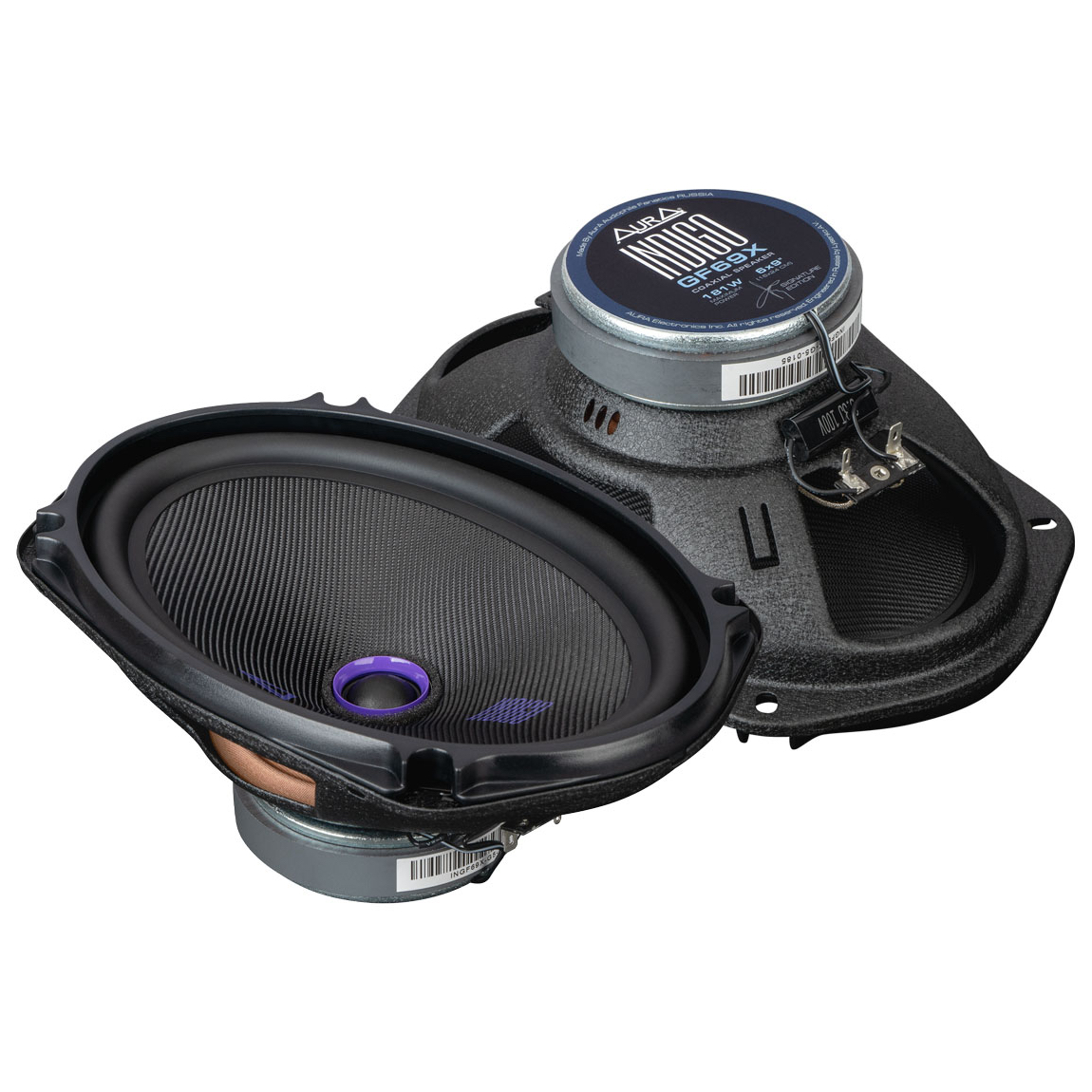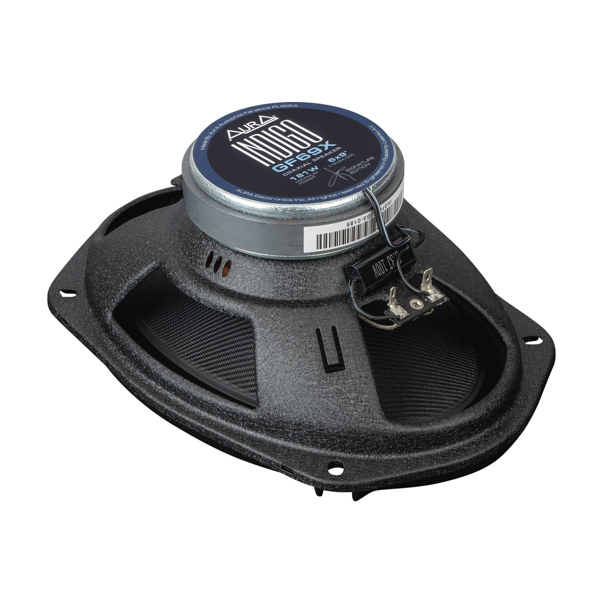 AurA INDIGO-GF69X – 2-полосная коаксиальная акустическая система размером 6×9″ (16×24 см), созданная по техническому заданию и под контролем AurA Sound Equipment в рамках Signature Edition. Модель ориентирована на пользователей, ищущих мощное и сбалансированное звучание без необходимости установки компонентных систем. Мидвуфер оснащён диффузором из стекловолокна с бутилкаучуковым подвесом и звуковой катушкой 1,25″, способной выдерживать длительные тепловые нагрузки. Высокочастотный динамик – купольный шелковый твитер с неодимовым магнитом и жидкостным охлаждением – обеспечивает точную и мягкую передачу высоких частот. Чувствительность системы – 90 дБ, номинальная мощность – 91 Вт, частотный диапазон – от 40 Гц до 20 кГц. Металлические защитные грили, надёжная механика и высококачественный фильтр (6 дБ/окт) делают INDIGO-GF69X идеальным решением для апгрейда штатной акустики.