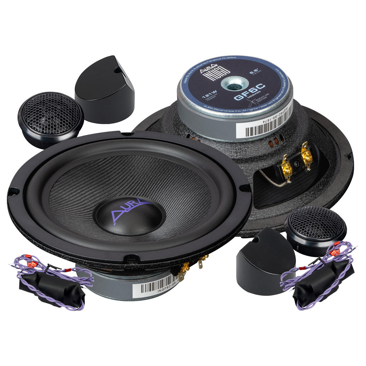 AurA INDIGO-GF6C – 2-полосная компонентная акустическая система типоразмера 6,5″ (16,5 см), выпущенная в рамках линейки Signature Edition под техническим контролем инженеров AurA Sound Equipment. Акустика создана для автолюбителей, стремящихся получить натуральное и насыщенное звучание во всём диапазоне частот от 40 Гц до 20 кГц. Мидвуфер оснащён диффузором из стекловолокна с антирезонансным покрытием, бутилкаучуковым подвесом и высокотемпературной 1-дюймовой звуковой катушкой, что гарантирует надёжную работу при длительной нагрузке. Твитер – 3/4-дюймовый купольный шёлковый излучатель с неодимовым магнитом и жидкостным охлаждением – обеспечивает чистое воспроизведение высоких частот. Кроссовер с крутизной спада 6 дБ/октаву оптимально разделяет сигналы между ВЧ и НЧ. При чувствительности 90 дБ и номинальной мощности 61 Вт система легко интегрируется в стандартные и апгрейд-системы автомобилей.