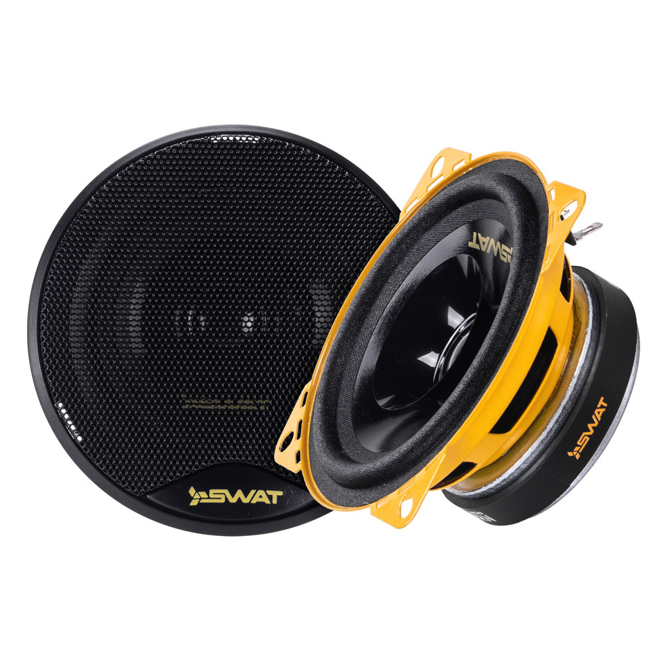 SWAT SP-H4 v2 - это 4-дюймовая широкополосная эстрадная акустическая система с рупором, разработанная как альтернатива штатным динамикам в автомобилях. Модель сочетает в себе компактные габариты и выдающиеся звуковые характеристики, благодаря чему способна радикально улучшить качество звучания даже без замены головного устройства. Легкий и жесткий диффузор из целлюлозы с тканевым подвесом, оптимизированная магнитная система с кольцом Фарадея и дюймовая звуковая катушка позволяют динамикам уверенно воспроизводить частотный диапазон от 110 Гц до 16 кГц. Это делает их универсальным решением как для фронтальной установки, так и для построения многокомпонентных звуковых систем.
