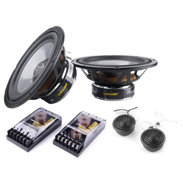 Тип акустической системы: Компонентная акустика • Размер: 6,5" (16,5 см) • Количество полос: 2 • Мощность RMS: 100 Вт • Сопротивление: 4 Ом • Частотный диапазон: 50 Гц - 26 кГц • Чувствительность (1Вт/1м): 89,5 дБ (1Вт/1м) • Материал диффузора: Целлюлоза с ламинированием • Материал подвеса: Бутилкаучуковая резина • Купол твитера: 25 мм, Шелк • Катушка мидбаса: 1" (25,4 мм) • Магнитная система мидбаса: Высококачественный феррит • Магнитная система твитера: Неодим • Корзина мидбаса: Сталь • Корпус твитера: Алюминий • Параметры T-S мидбаса: Fs - 57 Гц, Qts - 0.47, Vas - 15 л • Монтажный диаметр мидбаса: 143 мм • Монтажная глубина мидбаса: 66 мм • Монтажный диаметр твитера: 44 мм • Монтажная глубина твитера: 19 мм • Кроссовер: Твитер ФВЧ - 4 кГц (6-12 дБ/окт), Мидбас ФНЧ - 4,8 кГц (6 дБ/окт) • Размеры кроссовера (ДхВхШ): 120,5 х 65 х 31 • Резонансная частота твитера: 1500 Гц • Защитная сетка: Опция