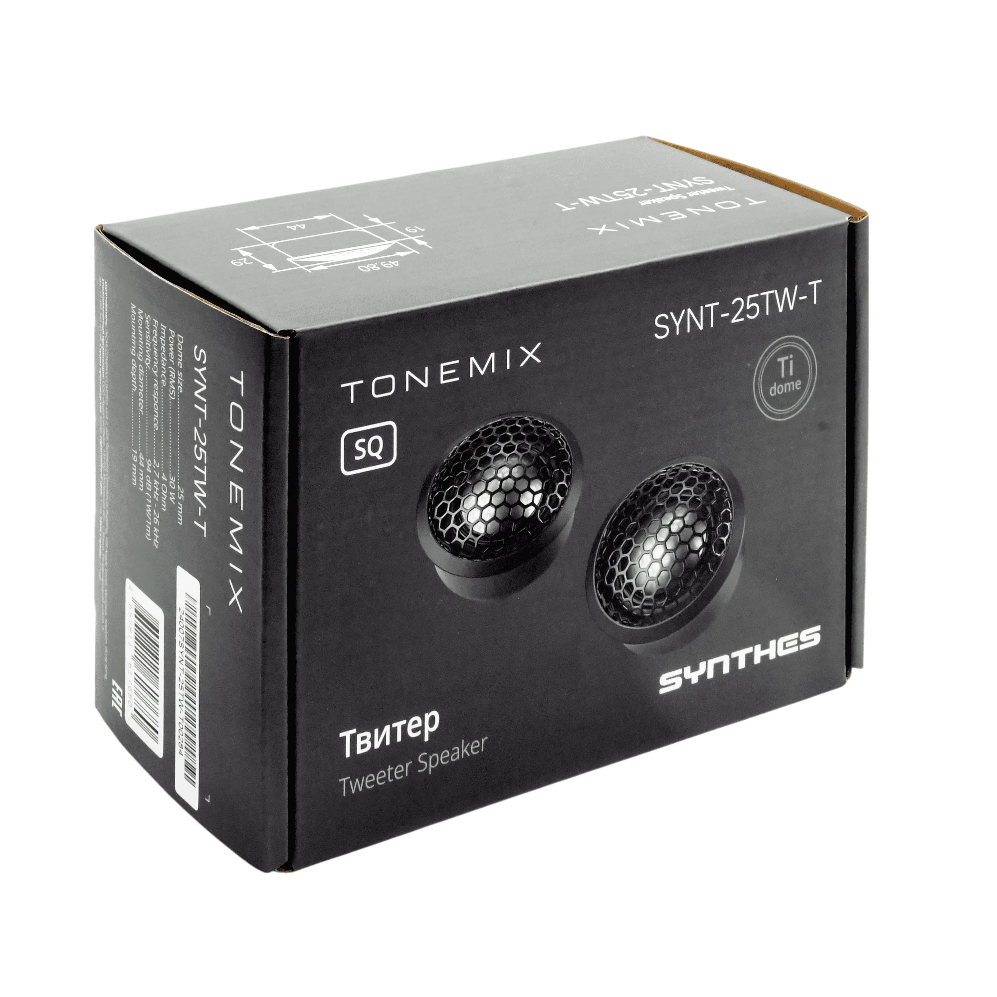 Tonemix SYNT-25TW-T - это 25-миллиметровый твитер из серии SYNTHES, который обеспечивает превосходную передачу высоких частот благодаря титановому куполу. Этот компонент аудиосистемы спроектирован для детализированного и прозрачного звука. Неодимовый магнит и алюминиевый корпус придают устройству надёжность и долговечность. В комплекте поставляется защитная сетка для защиты от повреждений.