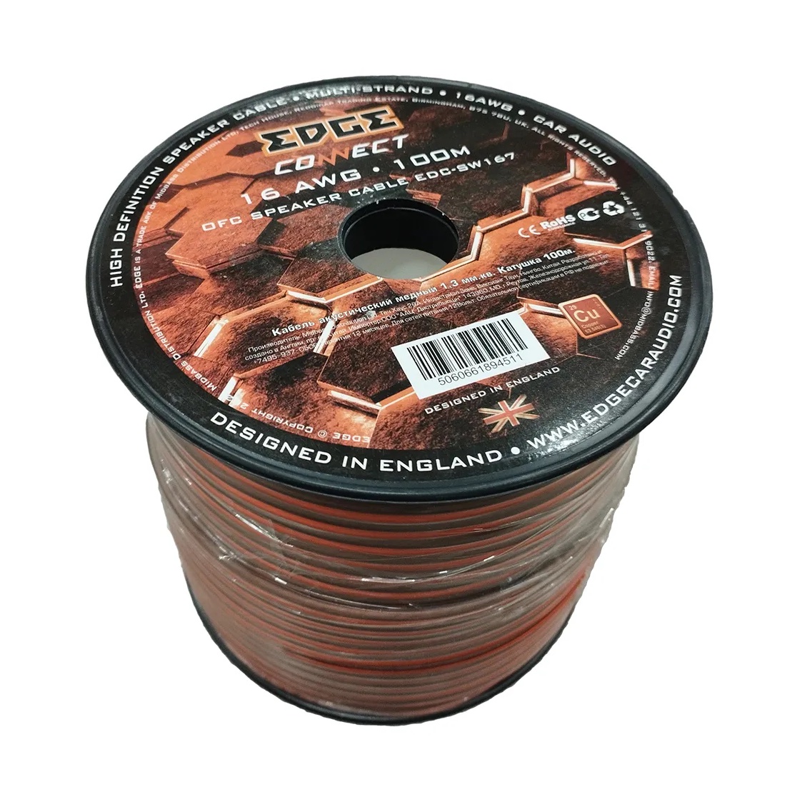 EDGE EDC-SW167 – это высококачественный акустический кабель, предназначенный специально для установки автомобильной аудиосистемы. Благодаря использованию проводника из бескислородной меди (OFC) с чистотой 99,99%, кабель обеспечивает стабильную и чистую передачу аудиосигнала без потерь, искажений или задержек. Сечение кабеля составляет 16 AWG (примерно 1,3–1,5 мм²), что позволяет эффективно подключать динамики и усилители без риска перегрева и снижения качества звучания. Конструкция с двумя жилами обеспечивает удобную установку и надежное соединение в любых условиях эксплуатации.