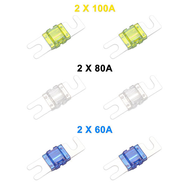 - Комплект предохранителей Mini-ANL разных номиналов упрощает адаптацию под конкретную мощность оборудования, обеспечивая безопасность.