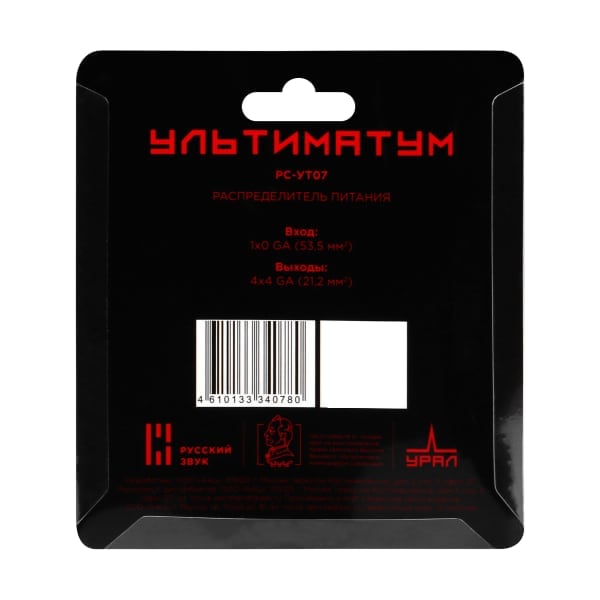 Урал Ультиматум РС-УТ07 – мощный распределитель питания, предназначенный для надёжной коммутации в системах автозвука высокой мощности. Изготовлен из позолоченного цинкового сплава, что обеспечивает высокую проводимость и устойчивость к окислению. Оснащён прозрачной акриловой крышкой для защиты от короткого замыкания и внешнего воздействия. Распределитель поддерживает подключение одного силового кабеля сечением до 0 GA на входе и четырёх выходов под кабели 4 GA. Идеально подходит для построения сложных схем питания с несколькими усилителями и блоками питания, где важна стабильность и безопасность соединений.