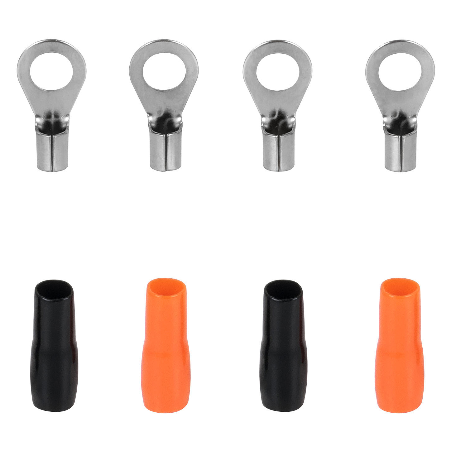 DL Audio Barracuda Ring Type 8 Ga Terminal - комплект кольцевых обжимных клемм, разработанных для силовых кабелей сечением 8 Ga (8,35 мм²). Эти клеммы обеспечивают стабильный контакт и высокую токопроводимость, что особенно важно при подключении мощных компонентов автозвука. В комплект также входят силиконовые кембрики, облегчающие визуальную идентификацию полярности.
