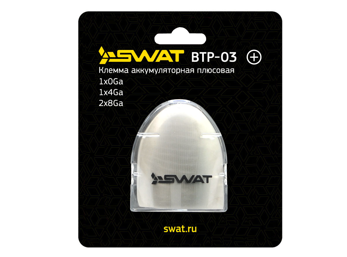 Крепкое и надёжное сцепление с аккумулятором, хорошая проводимость тока используемого материала, крепость самого материала и устойчивость к физическому воздействию при эксплуатации автомобиля – это действительно те качества, которые присущи клемме аккумуляторной SWAT BTP-03. Используя такие клеммы вы можете быть уверены, что они не слетят при движении, какими не были бы ямы, не будут деформироваться при снятии, и прослужат долго.