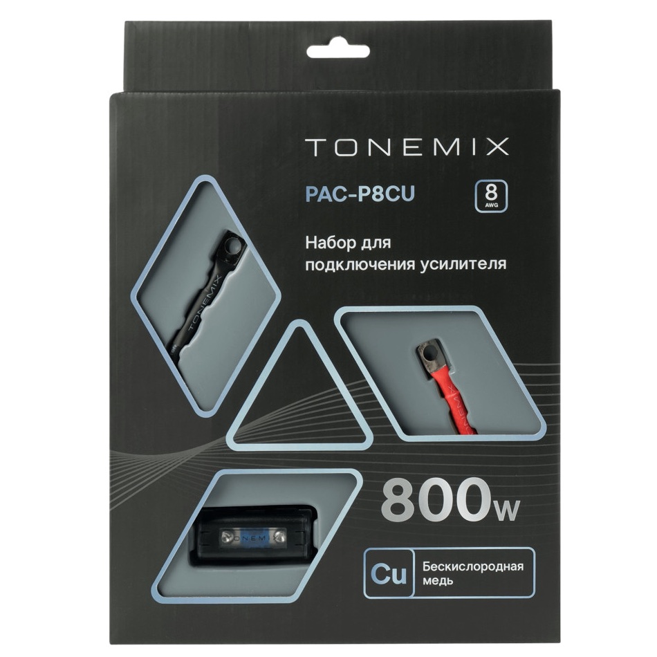 Tonemix PAC-P8CU – профессиональный набор для подключения автомобильного усилителя мощностью до 800 Вт. Кабели в комплексе изготовлены из бескислородной меди (OFC), что обеспечивает минимальные потери сигнала и высокую проводимость. Оболочка из сверхгибкого ПВХ с покрытием Soft Touch гарантирует удобство монтажа и долговечность эксплуатации. Набор оснащен уже опрессованными лужеными медными клеммами, выполненными по технологии ТМЛ, что ускоряет и облегчает установку. Плюсовой кабель дополнительно защищён нейлоновым рукавом «змея» для высокого уровня безопасности в подкапотном пространстве, а компактный держатель предохранителя стандарта Mini ANL обеспечивает надежную защиту электропитания.