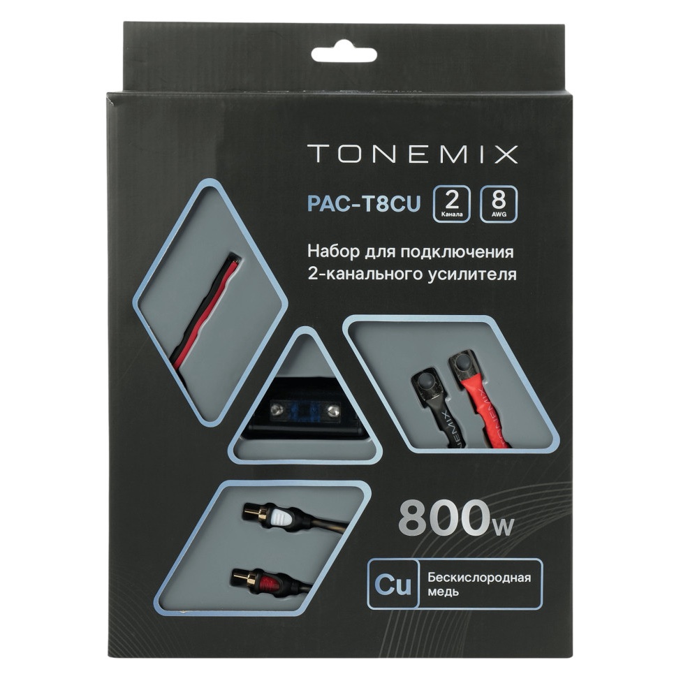 Tonemix PAC-T8CU – профессиональный монтажный комплект для подключения автомобильного усилителя мощностью до 1200 Вт. Включает в себя силовые, акустические и межблочные кабели с проводниками из бескислородной меди (OFC), обеспечивающие высокую проводимость и минимальные потери. Оболочки из сверхгибкого ПВХ с покрытием Soft Touch облегчают установку даже в труднодоступных местах. Установка упрощена благодаря уже опрессованным медным клеммам и входящим в комплект монтажным аксессуарам. Дополнительную защиту обеспечивает нейлоновый рукав плюсового кабеля, а помехи сведены к минимуму за счёт использования витой пары в межблочном кабеле. Упаковка с окнами Touch Me позволяет оценить качество компонентов ещё до вскрытия комплекта.