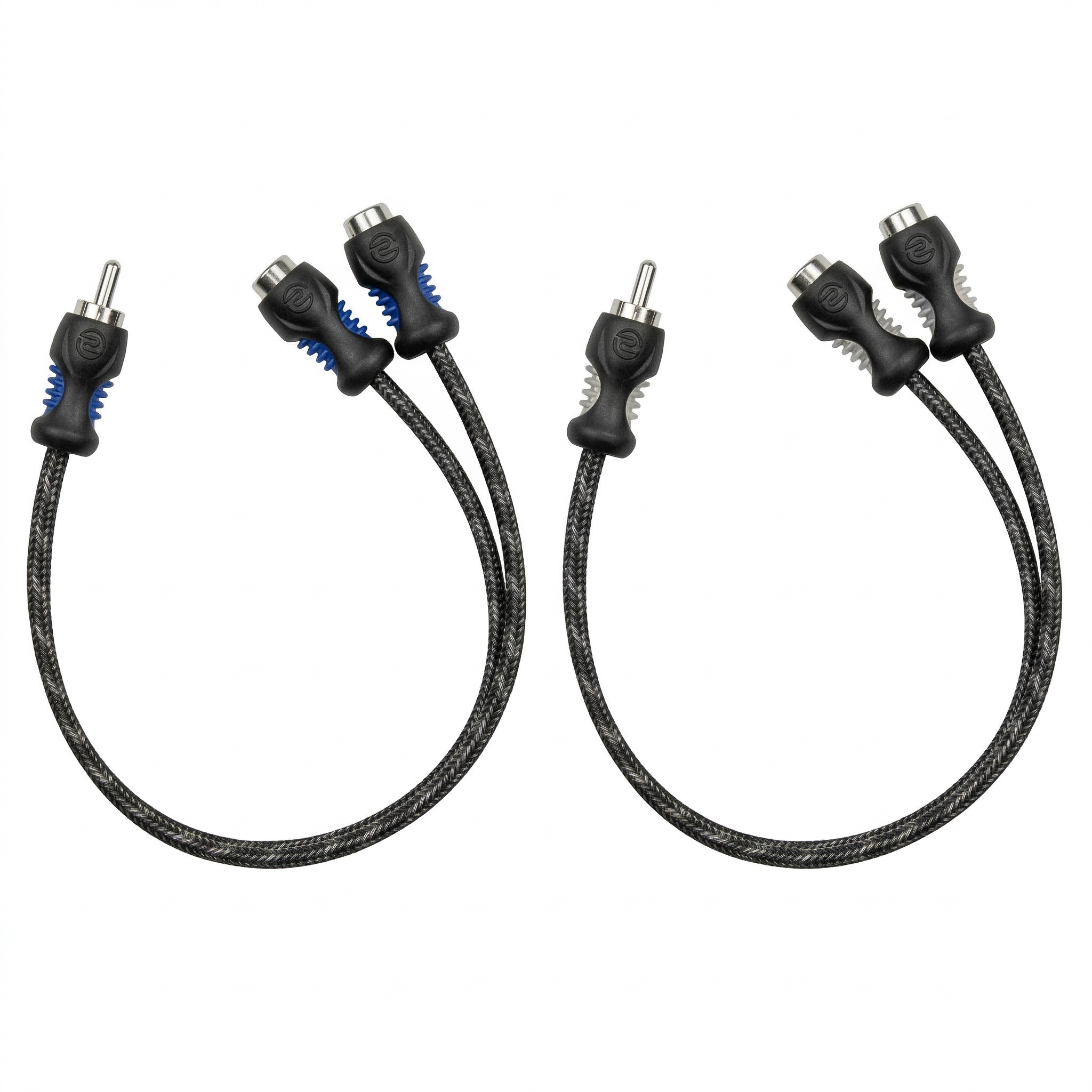 Recoil R1M2F – Y-образные RCA адаптеры Echo Series, разработанные для высококачественного разделения аудиосигнала без потерь. Конфигурация «1 RCA папа – 2 RCA мама» обеспечивает удобное подключение дополнительного усилителя или распределение сигнала между компонентами аудиосистемы. Использование 99,99% бескислородной меди в многожильной конструкции проводника гарантирует чистоту сигнала, а технология витой пары минимизирует электромагнитные помехи. Никелированные разъёмы с раздельными наконечниками обеспечивают плотный контакт и устойчивую передачу. Упаковка включает два адаптера длиной 0,3 м с гибкой оболочкой из матового ПВХ, устойчивой к излому и удобной в инсталляции.