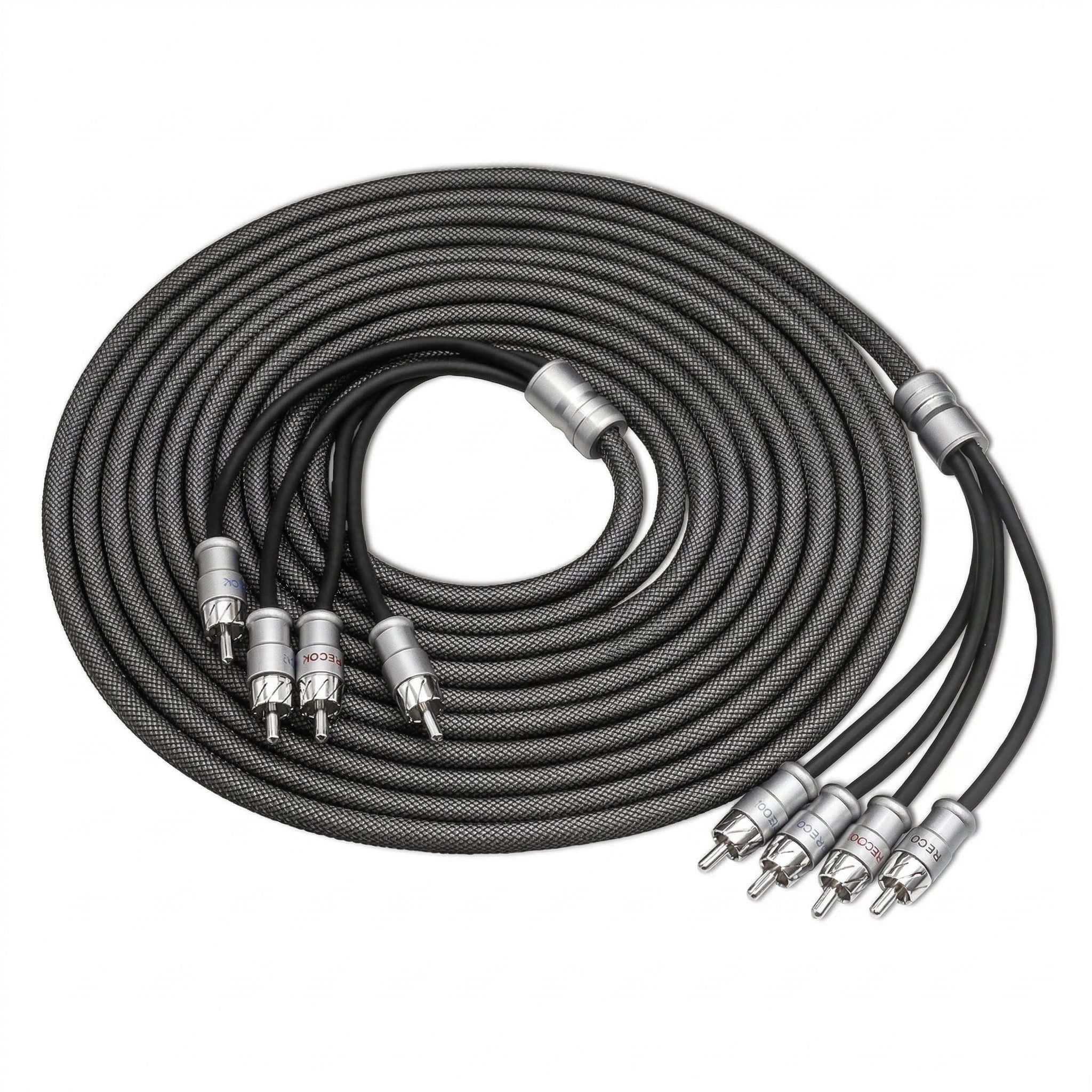 Количество каналов: 4 • Тип разъемов: 4 RCA (папа) -> 4 RCA (папа) • Материал проводника: Бескислородная медь • Длина провода: 5 метров • Экранирование: Алюминиевая фольга и витая пара • Изоляция: Матовый ПВХ с нейлоновой оплеткой • Разъемы: Латунь премиум-класса с коррозионной стойкостью