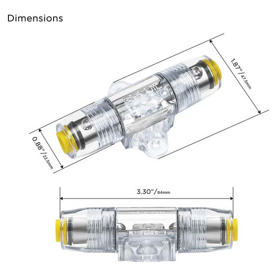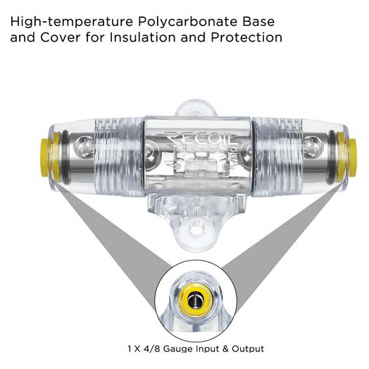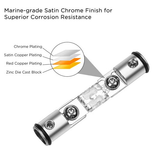 Стандарт предохранителя: Mini-ANL • Для кабеля: 4 или 8AWG • Конструкция: Кованая и обработанная цинковая • Покрытие: Матовое хромированное покрытие морского класса для превосходной коррозионной стойкости