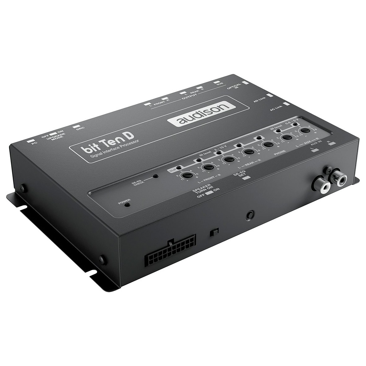 Аудиопроцессор Audison bit Ten D способен удивить богатством возможностей и уровнем воплощения в своем ценовом классе. Он имеет широкий набор аналоговых и цифрового входов и выходов и станет неоценимым помощником в настройке звучания как при построении аудиосистемы на покупных компонентах, так и при апгрейде штатной аудиосистемы с сохранением штатного головного устройства.
