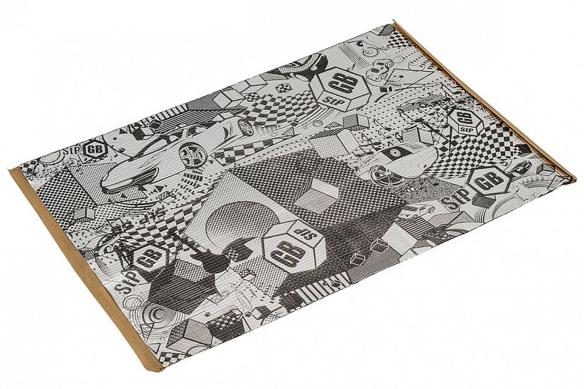Материал StP GB 4 (0.75x0.47) - бюджетный вибропоглощающий материал, представляющий собой трехслойную конструкцию, состоящую из алюминиевой фольги толщиной 60 мкм и липкого полимерного слоя, защищенного антиадгезионной бумагой.