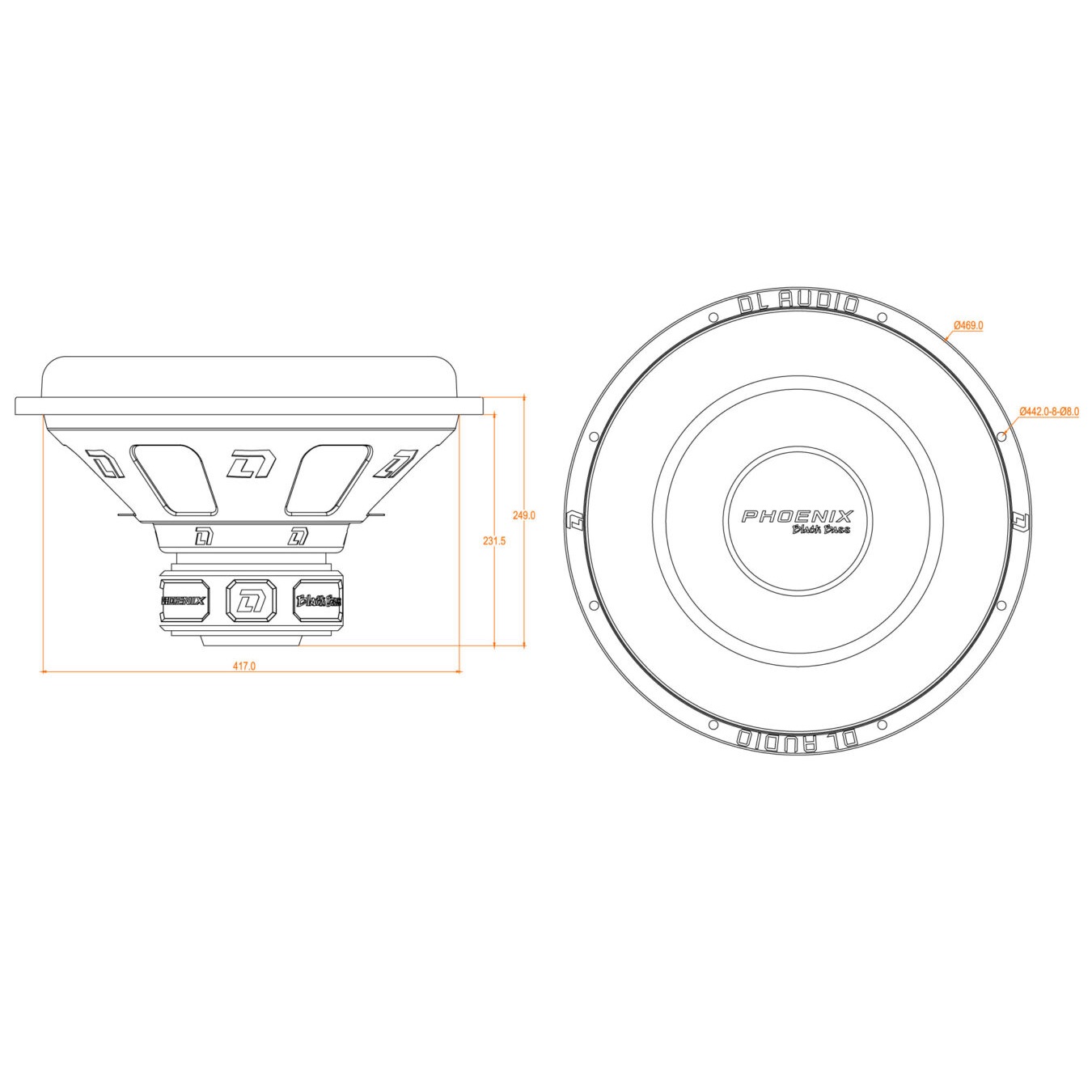 Номинальный диаметр: 460 мм • Номинальная мощность: 700 Вт • Номинальное сопротивление: 2+2 Ом • Средняя чувствительность: 86.7 дБ • Диаметр звуковой катушки: 3 дюйма • Fs: 24.5 • Qts: 0.54 • VAS: 148.7 л • Внешний диаметр: 469 мм • Посадочная глубина: 231.5 мм • Диаметр монтажного отверстия: 417 мм • Расстояние по крепежу: 442 мм