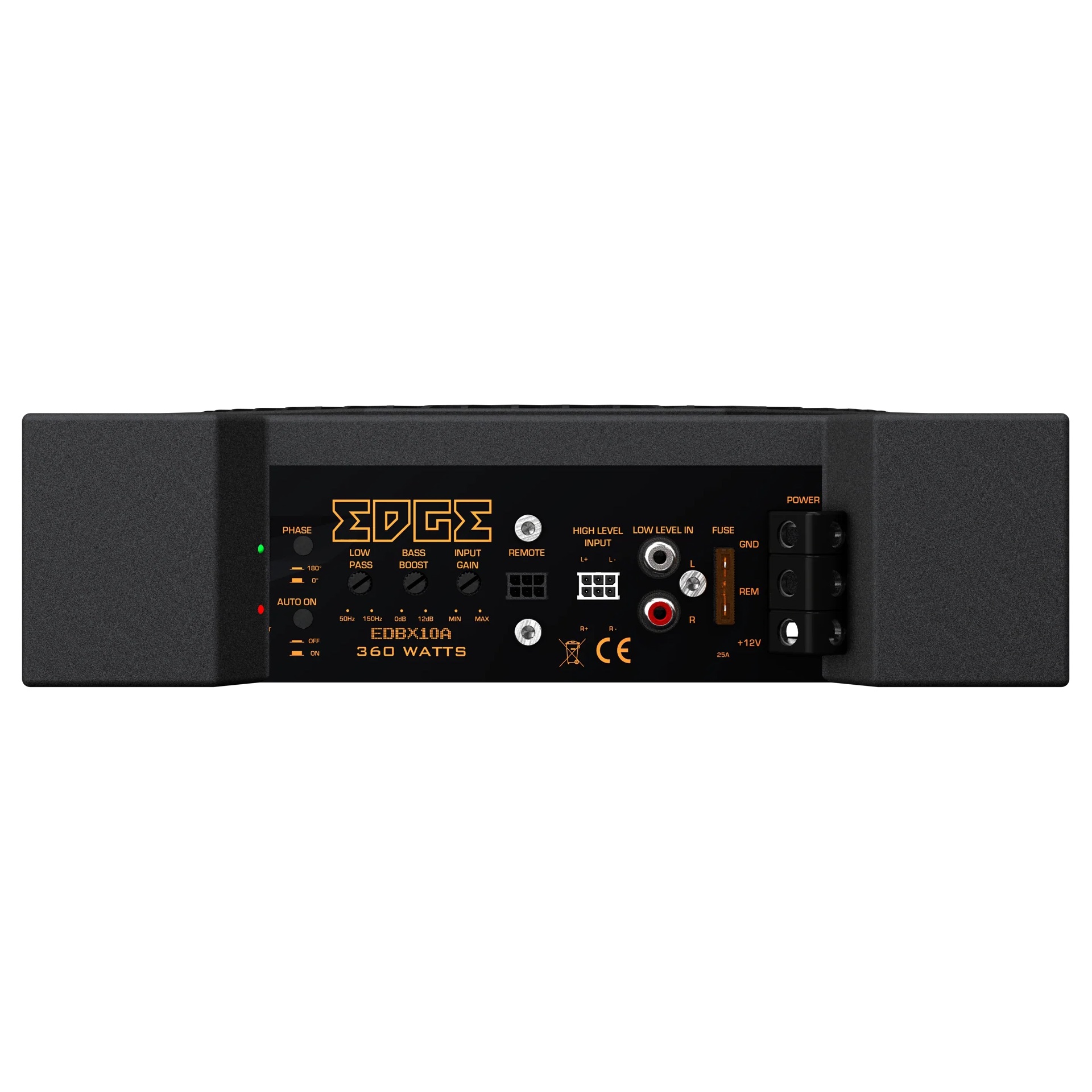 EDGE EDBX10A-E0 – компактный активный сабвуфер в ультратонком корпусе, созданный для установки в ограниченном пространстве автомобиля без потери качества баса. Модель оснащена 10-дюймовым динамиком EDBX10S и встроенным усилителем мощностью 180 Вт RMS, что обеспечивает плотный и контролируемый низ в диапазоне от 30 до 250 Гц. Литой алюминиевый корпус повышает эффективность охлаждения и надежно защищает внутренние компоненты. Благодаря автоматическому включению по высокоуровневому сигналу сабвуфер легко интегрируется со штатной магнитолой, а наличие линейных входов и отдельного remote-провода делает его совместимым с aftermarket-головными устройствами. Регулировка фазы 0/180° и выносной пульт управления уровнем баса позволяют точно настроить звучание под салон автомобиля. Защитная металлическая сетка предохраняет динамик при установке в тесных нишах.