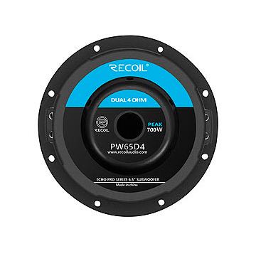 Recoil PW65D4 - 6.5-дюймовый автомобильный сабвуфер из серии Recoil Echo Pro, созданный для тех, кто ценит мощный и чистый бас. Сабвуфер сочетает пиковую мощность 400 Вт и номинальную мощность 200 Вт, обеспечивая отличное качество звука. Оснащен 2-дюймовой 4-слойной звуковой катушкой из черного алюминия с эффективным теплоотводом, что гарантирует долговечность и надежность даже при высокой нагрузке. Подвес из пеноматериала высокой плотности минимизирует искажения, а инновационная система охлаждения корзины улучшает производительность.