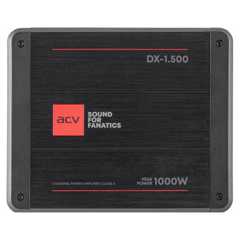 ACV DX-1.500 – мощный одноканальный автомобильный усилитель класса D, предназначенный для раскрытия полного потенциала сабвуфера и усиления низкочастотного диапазона в аудиосистеме автомобиля. Моноблок обеспечивает стабильную работу при нагрузке 1, 2 и 4 Ом, выдавая до 650 Вт при 1 Ом, что позволяет получить плотный, глубокий и контролируемый бас. Усилитель оснащён регулируемым Low Pass фильтром 35–250 Гц и плавной функцией Bass Boost (0–12 дБ), что даёт точную настройку звучания под конкретный сабвуфер и акустику салона. Высокое соотношение сигнал/шум более 96 дБ и низкий уровень искажений (THD 0,15%) гарантируют чистое и мощное воспроизведение НЧ диапазона.