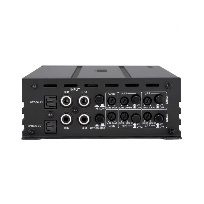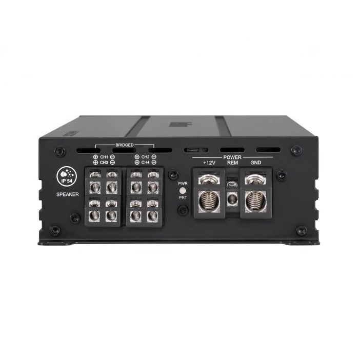 Количество каналов усилителя: 4 • Класс встроенного усилителя: широкополосный D класс • Влагозащищённость: IP54 • Выходная мощность RMS: 4х170Вт/4 Ом, 4х330Вт/2 Ом, 4х670Вт/1 Ом • Выходная мощность RMS мостом: 2х670Вт/4 Ом, 2х1350Вт/2 Ом • Входы высокого уровня: 4 • Входное напряжение для входов ВУ: до 40 В • Цифровой вход: оптический вход PCM 24бит/192кГц • Фильтр ВЧ: 20 – 20000 Гц, 12 дБ/окт. • Фильтр НЧ: 35 – 20000 Гц, 12 дБ/окт. • Режим Direct: есть • ДxШxВ: 291x125x47 мм