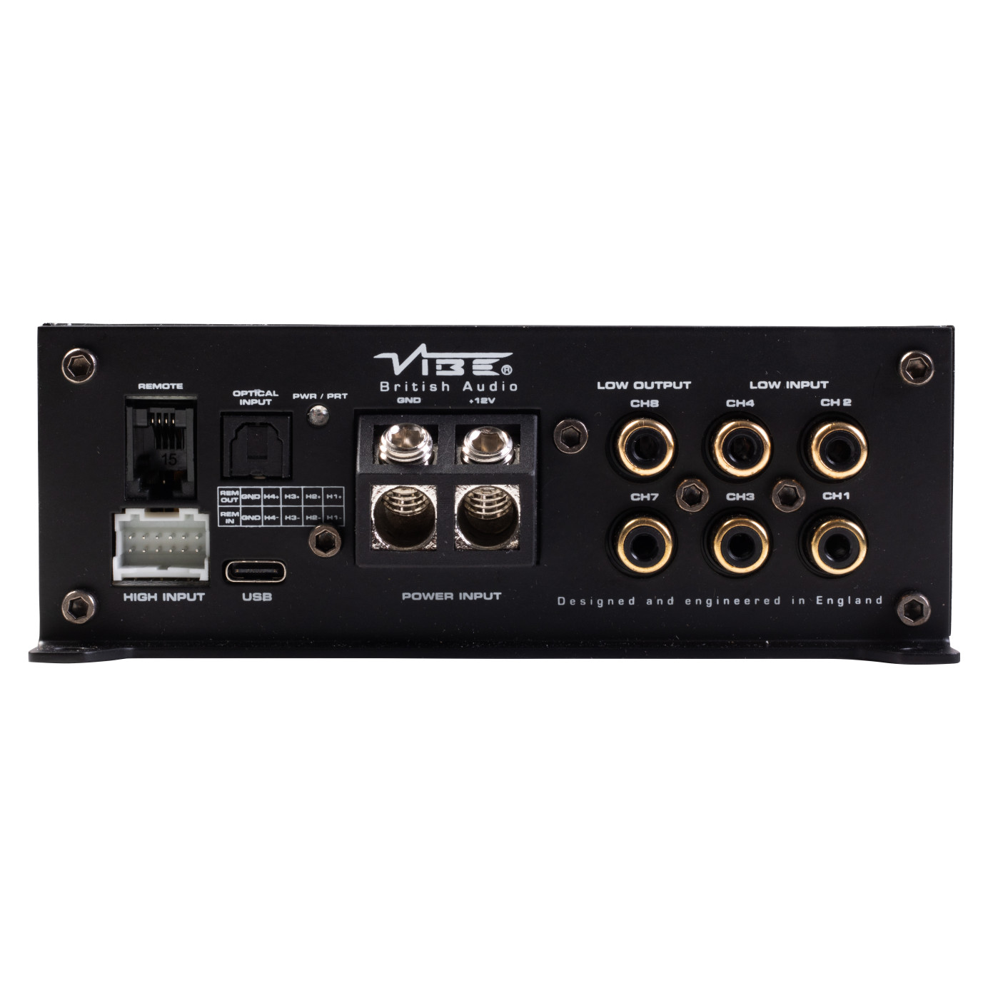 VIBE POWERBOX80.6-8DSP-V3 – компактный 6-канальный автомобильный усилитель с встроенным цифровым процессором, построенный на технологии Mini Class D. Модель сочетает высокую выходную мощность до 6 x 100 Вт RMS при 2 Ом и расширенные возможности DSP-настройки через приложение с управлением по Bluetooth. Благодаря оптическому входу, Bluetooth и широким возможностям маршрутизации сигнала усилитель легко интегрируется в штатные аудиосистемы, превращая заводское головное устройство в полноценный цифровой источник. Компактные размеры корпуса позволяют скрытую установку, а функция Auto Sense избавляет от необходимости подключения REM-провода. Полный контроль над звуком обеспечивают 31-полосный параметрический эквалайзер, настройка кроссоверов, временная коррекция и встроенный микшер для суммирования и распределения сигнала в многокомпонентных системах.